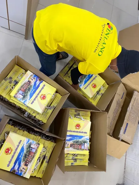 - Thành phẩm: Cán màng, bồi, bế, xỏ dây hoặc đóng wobler lò xo kẹp sắt vào sản phẩm